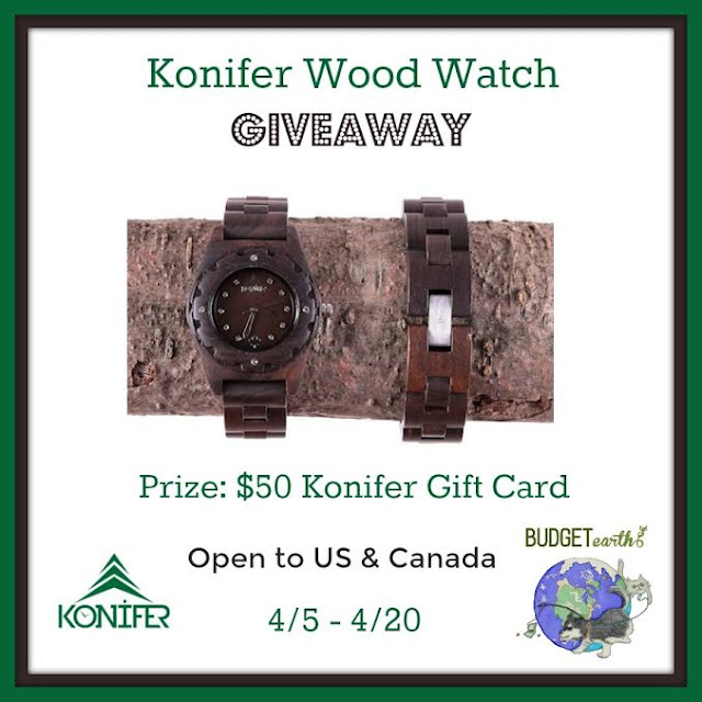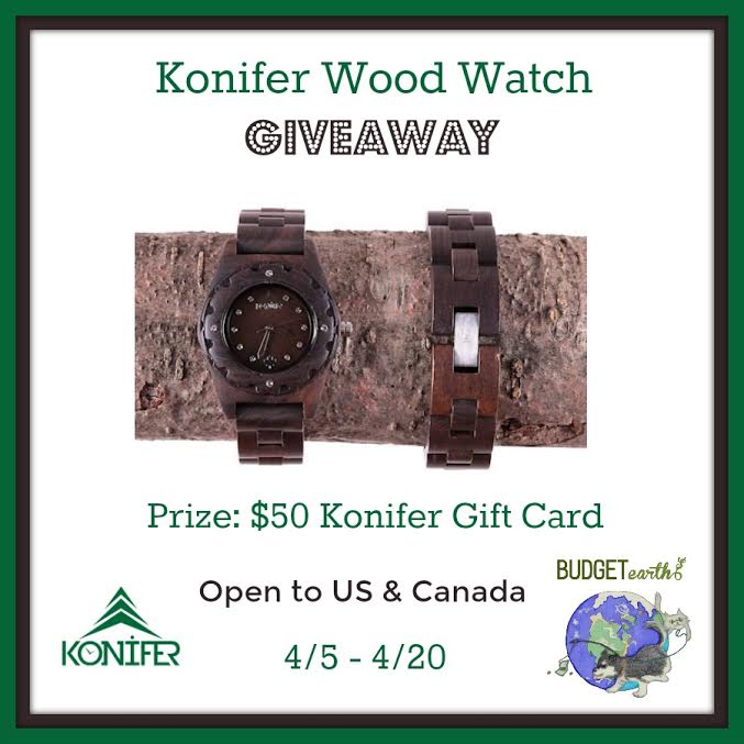 Would you like one of these awesome watches for yourself? Budget Earth and some of their favorite bloggers are excited to be working with Konifer on this fantastic giveaway! One very lucky reader will win a $50 Konifer Gift Card! To enter, make sure to read the rules below and then enter through the Rafflecopter! Konifer Wood Watch Giveaway