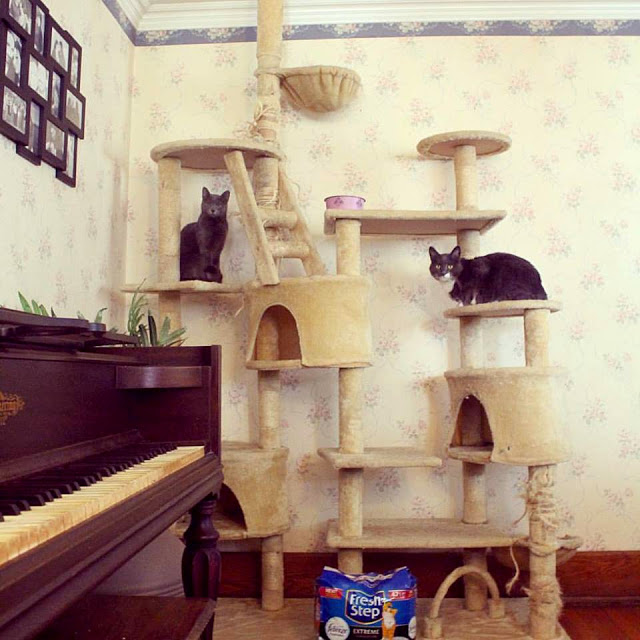 Seriously, though, can you blame them? It must have seemed like kitty paradise to Mary Jane and Cheeseball, who were still quite feral when we took them in.