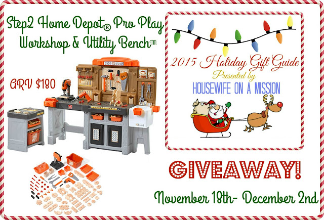 One of our readers are going to win a Step2 Home Depot Pro Play Workshop & Utility Bench, a $180 value!