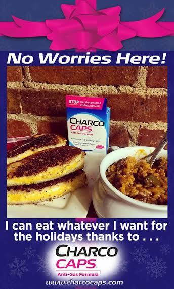 Thankfully, this Holiday season I have a secret weapon on my side. The embarrassing, uncomfortable gas will be a thing of the past thanks to CharcoCaps® Anti-Gas Formula. CharcoCaps® are made from activated charcoal, an ingredient commonly used by hospitals to treat accidental poisonings. Of course CharcoCaps® Anti-Gas Formula, being an OTC product, are not meant to treat poisonings. They can, however, allow you to eat all of your favorite foods without the worry of bloating or embarrassing gas! Oh, and they're completely safe, and provide gentle relief of all those annoying symptoms.