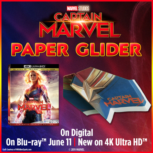 Get ready to go Higher, Further, Faster with your very own DIY #CaptainMarvel Paper Glider! Download the instructions & template now at http://bit.ly/CaptainMarvelGlider CAPTAIN MARVEL is On Digital! On Blu-ray™ June 11 | New on 4K Ultra HD™